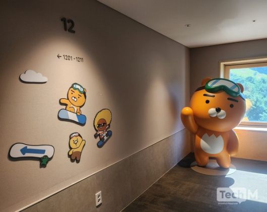 휘닉스파크 카카오룸 복도에는 스노우고글을 착용한 라이언이 관광객들을 반긴다. / 사진=조성준 기자 |