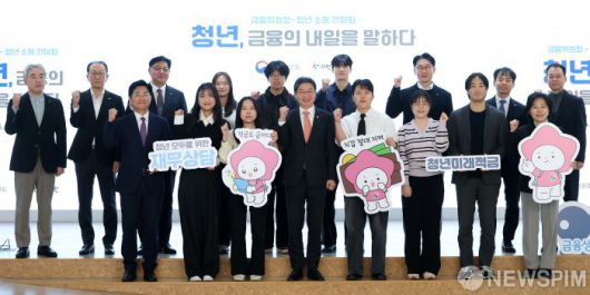 [서울=뉴스핌] 정일구 기자 = 이억원 금융위원장이 22일 오후 서울 중구 온드림 소사이어티에서 열린 금융위원장-청년 소통 간담회 '청년, 금융의 내일을 말하다'에서 참석자들과 기념촬영을 하고 있다. 2026.01.22 mironj19@newspim.com