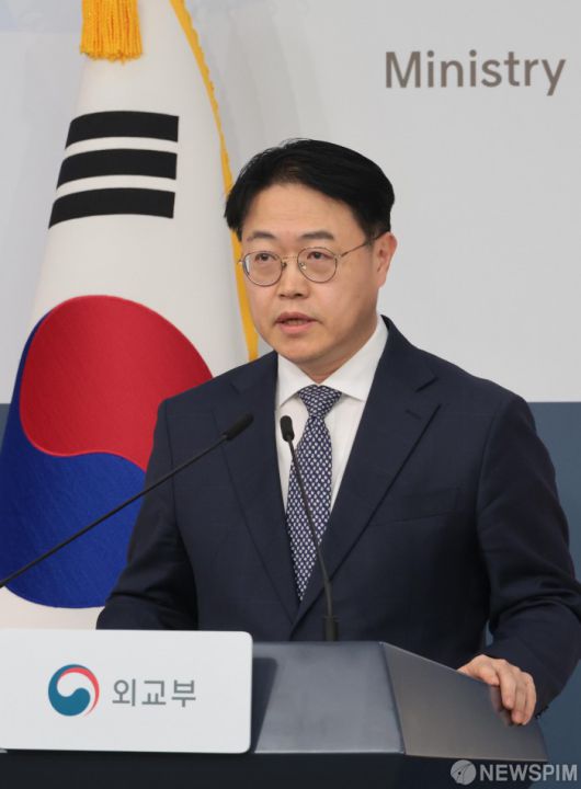 [서울=뉴스핌] 이길동 기자 = 이문배 외교부 부대변인이 22일 서울 종로구 외교부에서 정례브리핑을 하고 있다.2026.01.22 gdlee@newspim.com