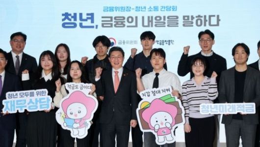 이억원 금융위원회 위원장이 22일 서울 중구 온드림 소사이어티에서 열린 금융위원장-청년 소통간담회 '청년, 금융의 내일을 말하다'에 참석, 간담회 시작에 앞서 참석자들과 기념사진을 찍고 있다. <ⓒ투자가를 위한 경제콘텐츠 플랫폼, 아시아경제(www.asiae.co.kr) 무단전재 배포금지>