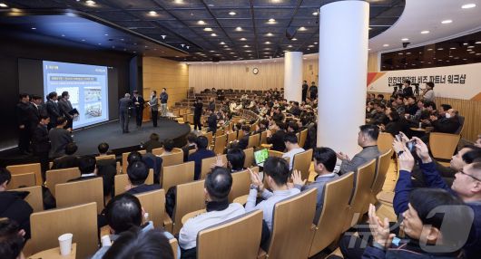 (서울=뉴스1) = SK텔레콤은 서울 을지로 SKT타워에서 안전보건 협력사 169곳을 초청해 지난 한 해 동안 노고에 감사의 뜻을 전하고 협력 방향 및 계획을 공유하기 위한 행사를 개최한다고 22일 밝혔다. 사진은 류정환 SKT 안전보건 최고 경영책임자가 협력사에 시상을 하는 모습. (SKT 제공. 재판매 및 DB 금지) 2026.1.22/뉴스1