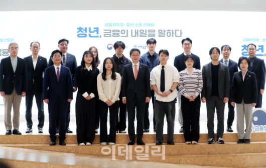 [이데일리 김태형 기자] 이억원(앞줄 가운데) 금융위원장이 22일 오후 서울 중구 온드림 소사이어티에서 열린 청년 소통 간담회 ‘청년, 금융의 내일을 말하다’에서 참석자들과 기념촬영을 하고 있다.