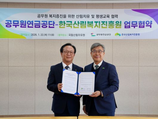 한국산림복지진흥원은 22일 경북 영주에 위치한 국립산림치유원 산림치유문화센터에서 공무원연금공단과 공무원 복지 증진을 위한 업무협약을 체결했다고 밝혔다.