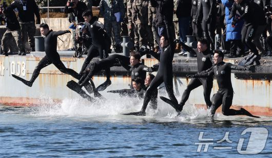 (창원=뉴스1) 윤일지 기자 = 전국적으로 맹추위가 기승을 부린 22일 경남 창원 진해 군항에서 해군 심해잠수사(SSU)들이 차가운 겨울 바다로 뛰어들며 혹한기 훈련을 하고 있다. (공동취재) 2026.1.22/뉴스1