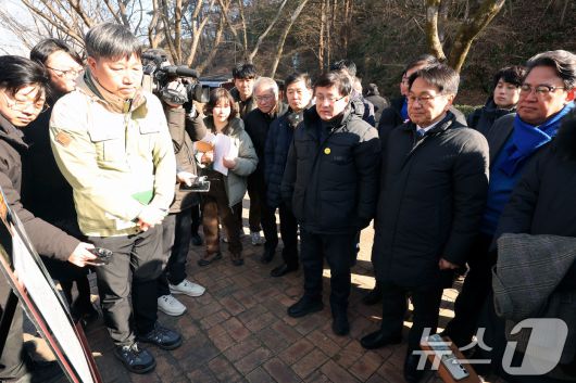 (광주=뉴스1) 박지현 기자 = 22일 광주 북구 생용동 우치공원 동물원에서 김성환 기후에너지환경부 장관이 강기정 광주시장과 판다 수용 여건에 대한 설명을 청취하고 있다. 2026.1.22/뉴스1white@news1.krCopyright ⓒ 뉴스1. All rights reserved. 무단 전재 및 재배포, AI학습 이용 금지.