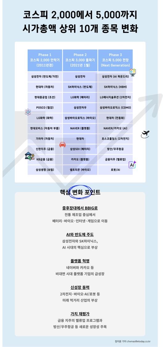코스피 2000에서 5000까지...시가총액 상위 10개 종목 변화 [인포그래픽]
