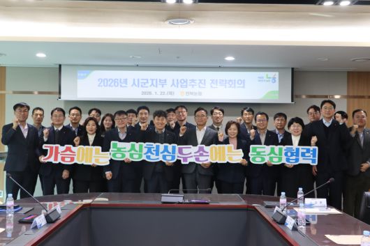 전북농협은 22일 도내 시군지부장과 지역본부 임직원이 참석한 가운데 '2026년 농정활동 및 농업현안 해결을 위한 지부장 회의'를 개최했다.