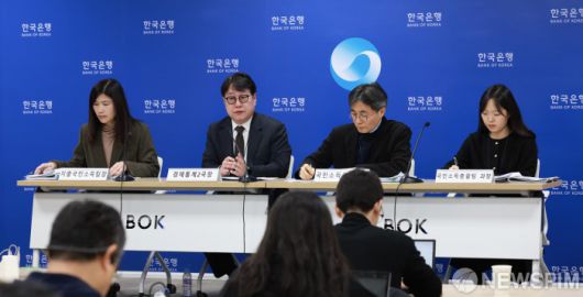 [서울=뉴스핌] 이동원 한국은행 경제통계2국장이 22일 오전 서울 중구 한국은행에서 열린 2025년 4/4분기 및 연간 실질 국내총생산 기자설명회에서 발언하고 있다.왼쪽부터 이현영 지출국민소득팀장, 이동원 경제통계2국장, 박창현 국민소득총괄팀장, 이예지 국민소득총괄팀 과장[사진= 한국은행] 2026.01.22 photo@newspim.com