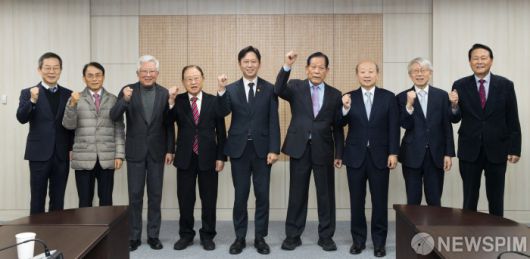 [서울=뉴스핌] 배경훈 부총리 겸 과학기술정보통신부 장관이 22일 오전 서울 종로구 광화문우체국에서 열린 '정보통신 분야 원로 간담회' 에서 기념촬영을 하고 있다.왼쪽부터 이종호 제4대 과학기술정보통신부 장관, 진대제 제9대 정보통신부 장관, 배순훈 제4대 정보통신부 장관, 이대순 제35대 체신부 장관,배경훈 부총리, 윤동윤 제40대 체신부 장관, 노준형 제10대 정보통신부 장관, 최기영 제2대 과학기술정보통신부 장관, 김창곤 전 정보통신부 차관(정우회 회장) [사진= 과학기술정보통신부] 2026.01.22 photo@newspim.com