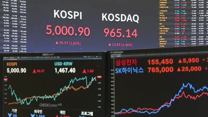 현장에서도 지켜봤었거든요. 또 다른 프로그램하면서요. 우리가 5000포인트를 유니콘이라고 하죠. 알고는 있지만 이 세상에 존재하지 않는 유니콘인데. 그동안 5000포인트는 우리에게 유니콘으로 다가왔었고 아마 5000이라는 숫자를 처음 제시했던 게 지난 이명박 정부 때 MB 정부 때 우리가 제값 받으면 5000 간다. 그래서 마치 주식시장의 끝 가야 될 곳이 5000, 5000 했었는데 정말 눈앞에서 이렇게 HTS에 5000을 찍는다는 건 참 감개무량했습니다, 개인적으로.