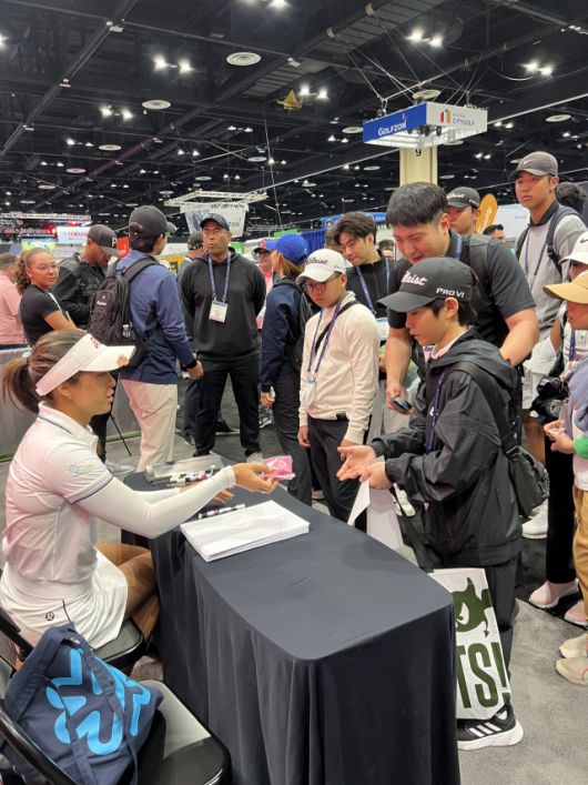 올해 LPGA 투어에 데뷔하는 야나 윌슨(20)은 22일(한국 시간) 미국 플로리다 올랜도의 2026 PGA 머천다이즈 쇼 현장에서 두미나와 후원협약식을 갖고 계약서에 사인했다. 정규 투어 데뷔 전인데도 이어진 사인회에 구름 팬이 몰려 인기와 기대를 실감하게 했다.