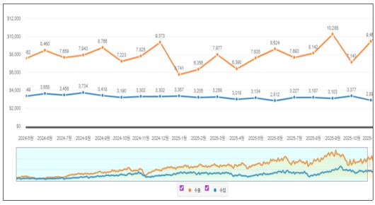 22일 도에 따르면 수출액 971억 달러, 수입액 377억 달러로 수출액은 전국 2위를 기록한 가운데 2024년에 비해 수출은 4.8% 늘었지만 수입은 8.4% 줄어 무역수지 흑자규모가 15.4% 증가한 것으로 나타났다.