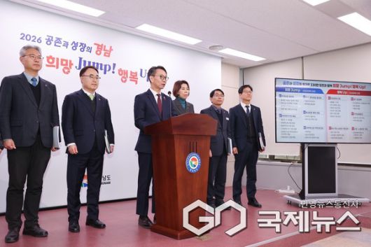 김명주 경남도 경제부지사는 1월 22일 오후 도청 브리핑룸에서 브리핑을 갖고 정부의 2026년 경제성장전략과 연계해 지역의 경제적 온기를 도민들이 직접 체감할 수 있도록 하고 첨단산업을 혁식하는 경남도 경제 대응 전략을 발표했다.