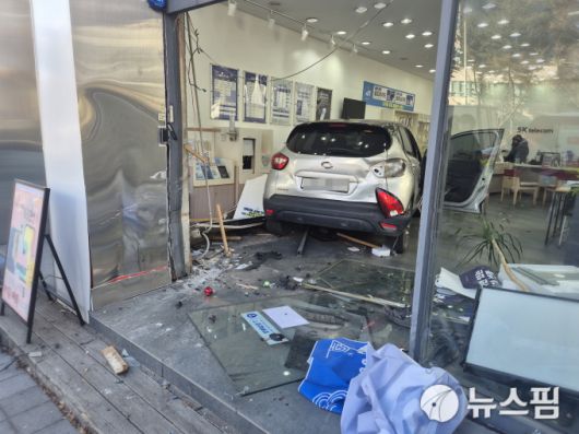 버스와 추돌 후 상가로 돌진한 차량 모습[사진=독자제공] |