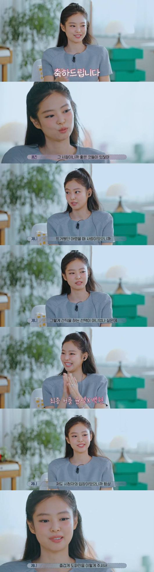 백현과 현지의 서사에 대해서도 깊은 공감을 보였다. 제니는 “한 번쯤은 다시 만나셨으면 좋겠다”고 말하면서도 “너무 뜨거웠던 어린 시절의 사랑이었기 때문에 오히려 그 기억을 간직하는 게 더 소중할 것 같다. 다시 만나 그 사랑을 깨뜨리는 것보다는 그렇게 간직하는 선택이 아니었나 싶다”고 덧붙였다.