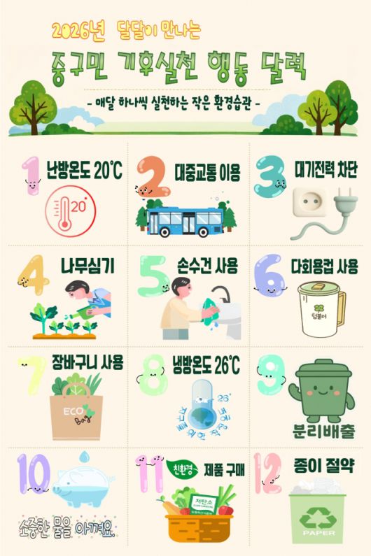 서울 중구가 올해부터 ‘달달이 기후실천 행동’을 정하고 주민 참여를 독려한다고 22일 밝혔다.