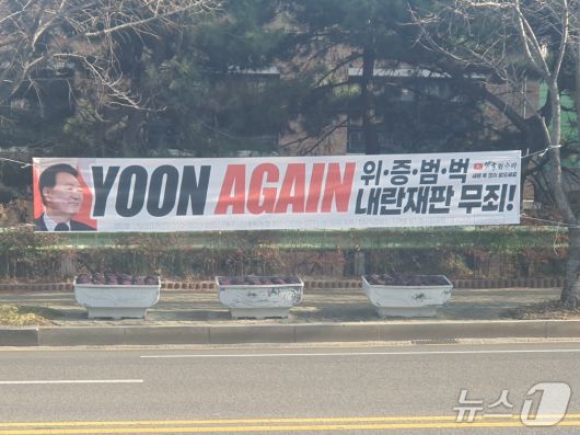 (울산=뉴스1) 김세은 기자 = 울산의 한 기초자치단체가 윤석열 전 대통령의 '내란 재판 무죄'를 주장하는 문구가 담긴 정당 현수막 철거에 나선다.