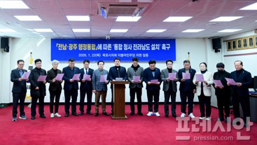 목포시의회 더불어민주당 의원 일동은 22일 발표한 입장문에서 "전남·광주 행정통합은 특정 지역의 이익을 위한 개편이 아니라, 인구 감소와 지방소멸 위기, 수도권 집중이라는 구조적 문제에 대응하기 위한 시대적 과제"라고 밝혔다.