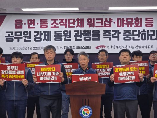 전국공무원노동조합 경남지역본부가 공무원들의 관변단체 야유회 또는 견학 행사의 '강제 동행' 관행을 즉각 중단하라고 촉구했다.