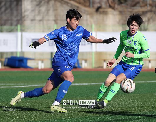 [스포티비뉴스=김천, 곽혜미 기자] 제22회 1,2학년 대학축구대회 중앙대와 상지대의 결승전이 22일 오후 경상북도 김천대학교 대운동장에서 열렸다. 중앙대 김수민이 드리블을 하고 있다. <저작권자 ⓒ SPOTV NEWS. 무단전재 및 재배포 금지>