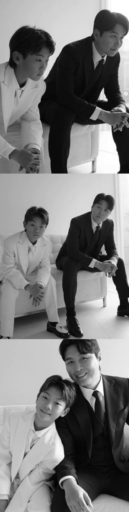 마지막 컷에서는 서로 어깨를 맞대고 환하게 웃으며 부자의 다정한 순간을 남겼다.