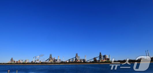 (포항=뉴스1) 최창호 기자 = 22일 오후 포스코 포항제철소 상공 위로 구름 한점 없는 푸른 하늘이 펼쳐지고 있다. 2026.1.22/뉴스1