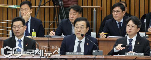 (서울=국제뉴스) 김윤덕 국토교통부 장관이 22일 서울 여의도 국회에서 열린 제431회국회(임시회) 국토교통위원회 12.29 여객기 참사 진상규명을 위한 국정조사특별위원회 청문회에 증인으로 출석해 의원 질의에 답변하고 있다./사진=이용우 기자
