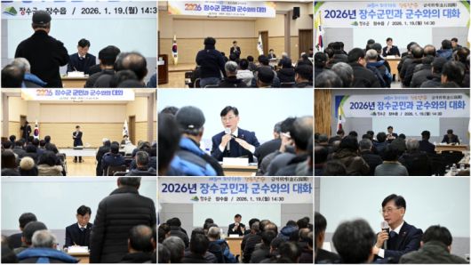 이번 대화에서는 총 120여 건의 제안과 건의사항이 접수됐으며, 장수누리랜드 명품 관광지 조성, 파크골프장 조성, 실내체육관 건립, 상수도 물복지 확대, 참샘골 행복주택, 농촌공간 정비사업 등 군정 핵심 현안이 폭넓게 논의됐다.