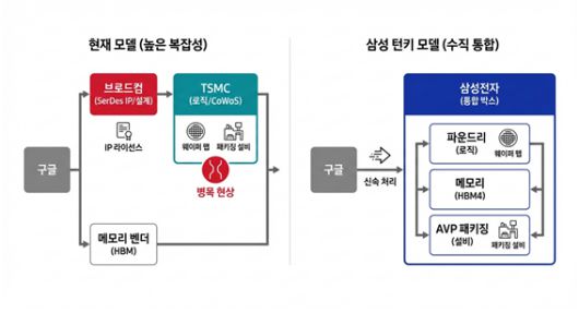 파운드리: 삼성 파운드리(4nm/2nm)에서 TPU의 연산 코어(Logic Die)와 HBM4의 베이스 다이를 생산합니다.