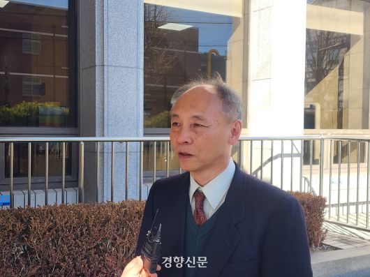22일 오후 국가보안법 위반 혐의 재심 재판에서 무죄를 선고받은 뒤 인터뷰하고 있는 문영석씨. 고귀한 기자 |