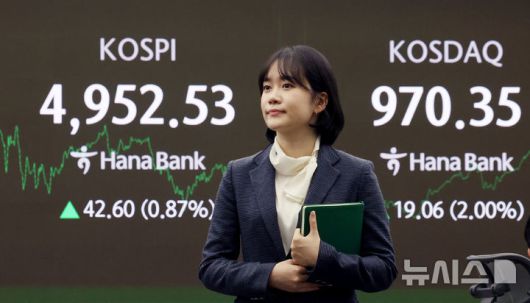 코스피는 전 거래일(4909.93)보다 42.60포인트(0.87%) 오른 4952.53에, 코스닥 지수는 전 거래일(951.29)보다 19.06포인트(2.00%) 상승한 970.35에 거래를 마쳤다. 2026.01.22. bluesoda@newsis.com