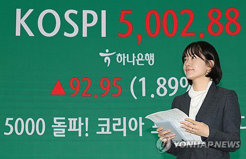 지난해 10월 사상 처음 4,000선을 돌파한 지 3개월 만에 그간 '꿈의 지수'로 불렸던 '오천피'(코스피 5,000) 고지마저 넘어선 것이다. 이후 차익 실현 매물에 오름폭은 일부 축소됐다.