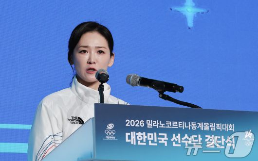 (서울=뉴스1) 김성진 기자 = 이수경 선수단장이 22일 서울 송파구 올림픽파크텔에서 열린 2026 밀라노코르티나 동계올림픽대회 결단식에서 답사를 하고 있다. 2026.1.22/뉴스1