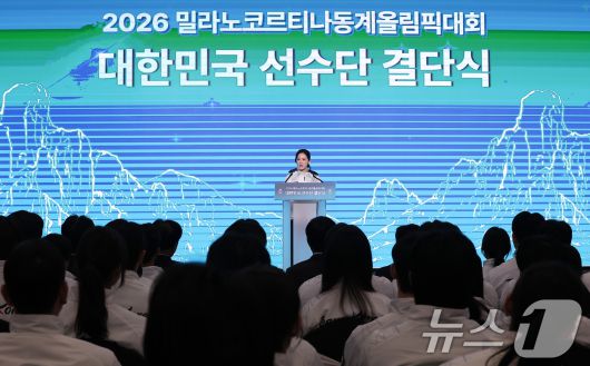 (서울=뉴스1) 김성진 기자 = 이수경 선수단장이 22일 서울 송파구 올림픽파크텔에서 열린 2026 밀라노코르티나 동계올림픽대회 결단식에서 답사를 하고 있다. 2026.1.22/뉴스1ssaji@news1.krCopyright ⓒ 뉴스1. All rights reserved. 무단 전재 및 재배포, AI학습 이용 금지.