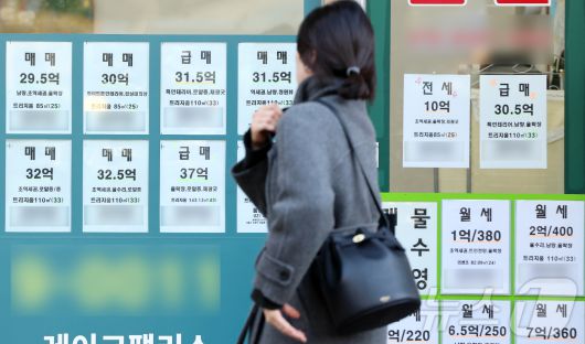 (서울=뉴스1) 김진환 기자 = 서울 아파트값이 13주 만에 가장 높은 수준으로 상승했다. 22일 한국부동산원이 발표한 1월 셋째 주(19일 기준) 주간 아파트 가격 동향에 따르면 서울 아파트 평균 매매가격은 0.29% 올랐다. 지난해 2월 첫째 주 상승 전환한 이후 50주 연속으로 상승세다. 사진은 이날 서울 송파구의 한 부동산에 인근 아파트 월세·전세·매매 매물 안내문. 2026.1.22/뉴스1