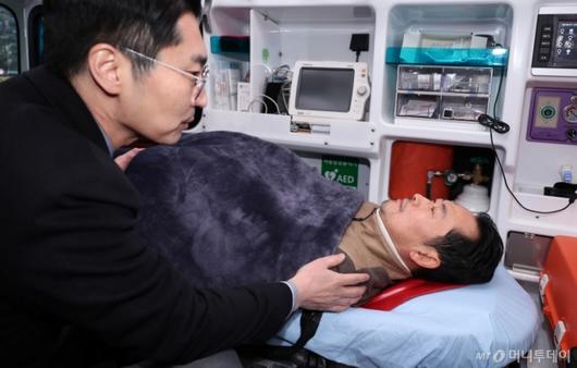 (서울=뉴스1) 국회사진기자단 = '통일교·공천헌금' 쌍특검법 수용을 촉구하며 단식을 시작한 장동혁 국민의힘 대표가 22일 서울 여의도 국회에서 단식 8일 만에 박근혜 전 대통령의 단식 중단 권고를 받아들여 병원으로 이송되고 있다. 2026.1.22/뉴스1 Copyright (C) 뉴스1. All rights reserved. 무단 전재 및 재배포, AI학습 이용 금지. /사진=(서울=뉴스1) 국회사진기자단 |
