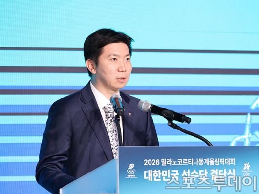 [스포츠투데이 권광일 기자] 유승민 대한체육회장이 22일 오후 서울 송파구 방이동 서울올림픽파크텔에서 열린 2026 밀라노 코르티나 동계올림픽 대한민국 선수단 결단식에 참석해 개식사를 하고 있다. 2026.01.22. [스포츠투데이 권광일 기자 sports@stoo.com]