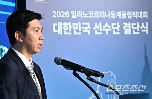 22일 잠실 올림픽파크텔에서 '2026밀라노코르티나 동계올림픽' 출전 대한민국 선수단 결단식이 열렸다. 인사말하는 대한체육회 유승민 회장. 잠실=송정헌 기자songs@sportschosun.com/2026.01.22/