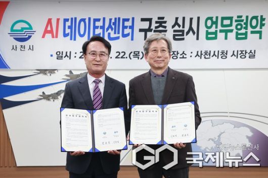 (사천=국제뉴스) 구정욱 기자 = 사천시는 22일 시장실에서 '사천 스카이시티 AI 데이터센터' 사업의 성공적 추진을 위해 사업 시행사인 ㈜태왕디엔디와 실무 업무협약을 체결했다.