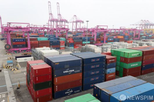 [인천=뉴스핌] 정일구 기자 = 미국이 상호관세 유예 기간 종료 시점인 8일까지 협상을 마무리 짓지 못한 국가들에게 '다음 달 1일 발효'를 조건으로 한 관세율을 곧 통보할 것이라고 예고했다. 도널드 트럼프 대통령은 6일(현지시간) 뉴저지주 일정을 마치고 워싱턴으로 돌아가기 전 취재진과 만나 관세 인상을 알리는 서한을 12개국 또는 15개국을 대상으로 7일(현지시간)부터 발송할 것이라고 밝혔다. 사진은 7일 인천 연수구 인천신항 컨테이너 터미널 모습. 2025.07.07 mironj19@newspim.com |