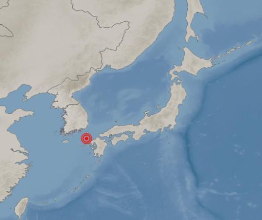 진앙은 북위 33.70도, 동경 129.30도다. 지진 발생 깊이는 10km다.