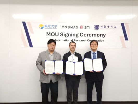 코스맥스는 일본 도쿄에서 서울대 및 일본 도쿄대와 글로벌 공동 연구를 위한 3자 연구 협약을 체결했다고 22일 밝혔다.