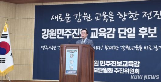 강원민주진보 교육감 후보 단일화 추진위원회는 22일 강원도농업인단체회관에서 기자회견을 열고 강삼영 상임대표가 단일 후보로 최종 선출됐다고 밝혔다.