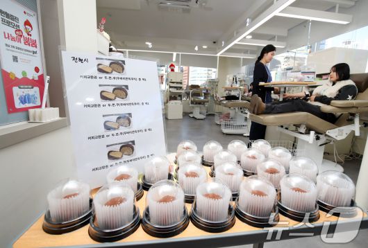 (대구=뉴스1) 공정식 기자 = "지난 주말 백화점에서 1시간이나 줄 서 기다리다 겨우 '두쫀쿠'를 사 먹었는데… 헌혈하고 먹으니까 더 맛있는 것 같아요."