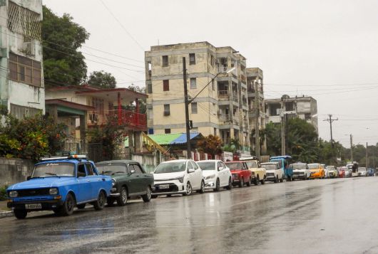 쿠바 수도 아바나에서 20일(현지시간) 자동차들이 기름을 넣기 위해 길게 줄을 서 대기하고 있다. (아바나/AFP연합뉴스) |