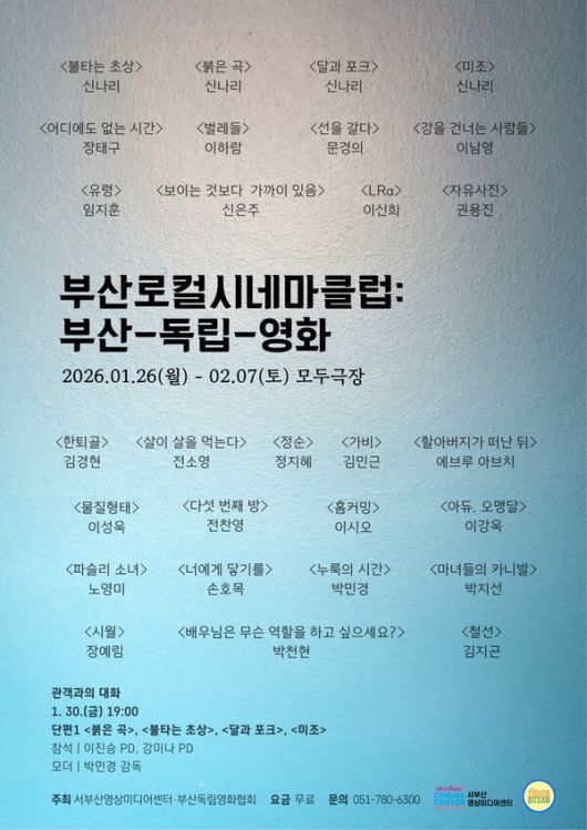 이승진 서부산영상미디어센터 센터장은 "개관영화제에 이어 부산 독립영화의 매력을 가까이서 만날 수 있는 자리를 마련해 뜻깊다"며 "우리 지역의 다채로운 시선이 담긴 작품들을 통해 시민들이 독립영화 특유의 진솔한 울림을 편안하게 즐기길 바란다"고 전했다.