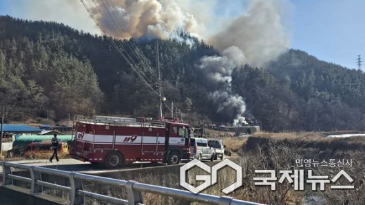 (진주=국제뉴스) 구정욱 기자 = 진주시 집현면의 한 야산에서 22일 오후 1시 20분께 산불이 발생했다.