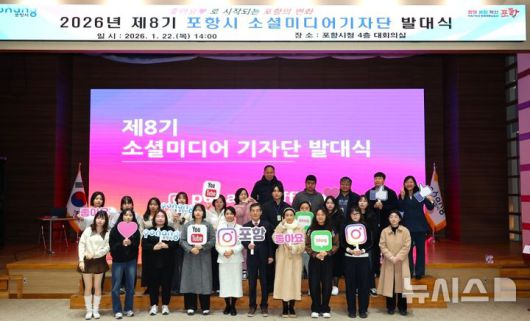 [포항=뉴시스] 송종욱 기자 = 포항시는 22일 시청 대회의실에서 '제8기 소셜 미디어 기자단 발대식'을 개최했다. 사진은 발대식 후 기념 촬영하는 모습. (사진=포항시 제공) 2026.01.22. photo@newsis.com |
