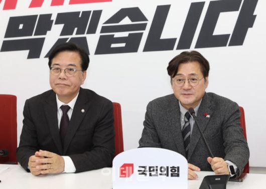 [이데일리 노진환 기자] 홍익표(오른쪽) 신임 청와대 정무수석이 22일 서울 여의도 국회에서 송언석 국민의힘 원내대표를 예방, 발언하고 있다.