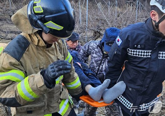 (경산=뉴스1) 정우용 기자 = 차량 추락 현장을 목격한 경북 경산의 의용소방대원이 신속하게 대응해 운전자를 구했다.